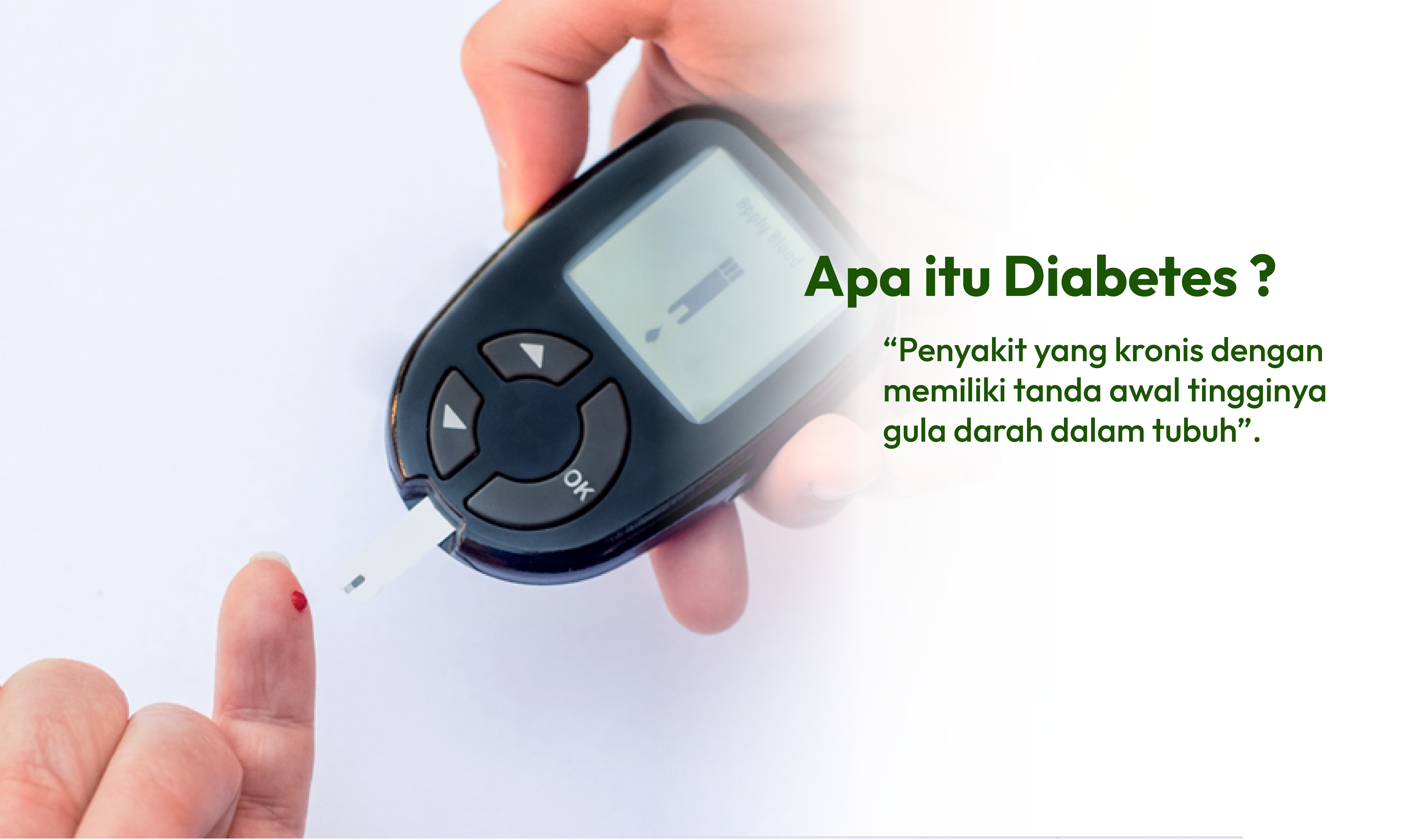 Diabetes adalah kondisi ketika kadar gula (glukosa) dalam darah meningkat secara tidak normal. Hal ini terjadi karena tubuh tidak mampu memproduksi insulin yang cukup atau tidak dapat menggunakan insulin secara efektif. Insulin berperan penting dalam mengatur kadar gula darah agar tetap stabil dan dapat digunakan sebagai sumber energi oleh sel-sel tubuh.