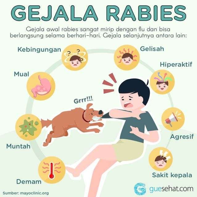 Rabies termasuk penyakit zoonosis, yaitu penyakit yang menular dari hewan ke manusia. Penyakit ini bersifat fatal ketika sudah timbul gejala, sehingga penanganan harus dilakukan sebelum virus masuk ke sistem saraf pusat.
